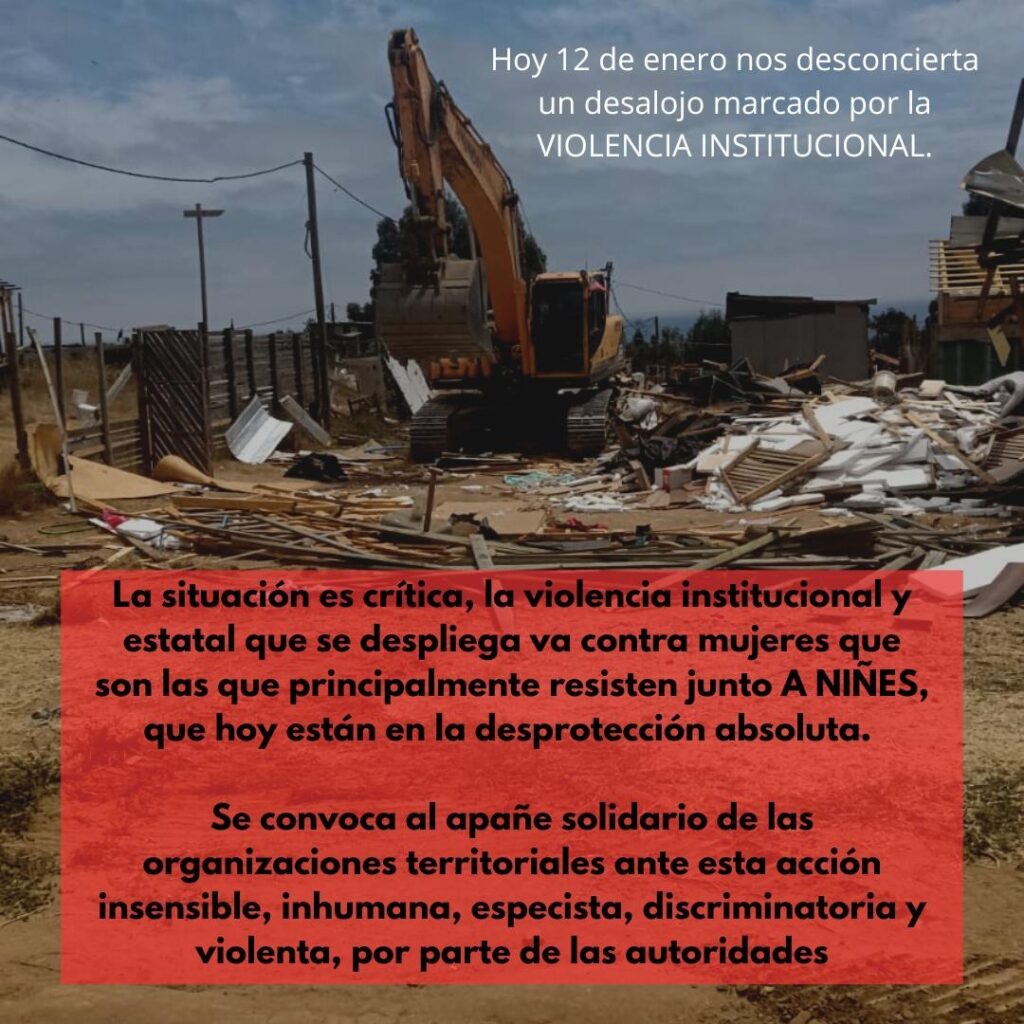 Hoy 12 de enero nos desconcierta UN DESALOJO MARCADO POR LA VIOLENCIA INSTITUCIONAL.