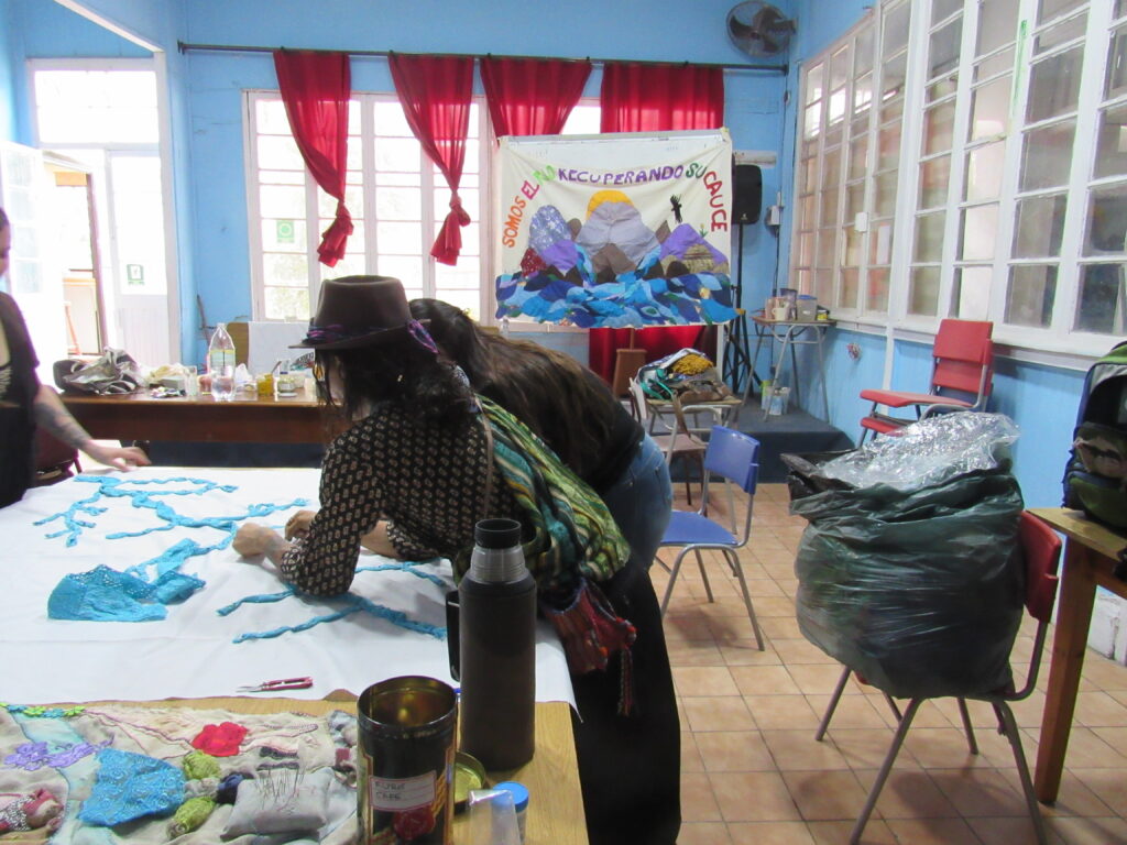 Creemos que cada acción de memoria, por pequeña que sea, es un gesto de resistencia y lucha, porque aún seguimos y seguiremos con cada una de nuestras compañeras en el corazón y en cada puntada de nuestras agujas, retazo a retazo de tela, zurcimos las memorias de las aguas, de su fuerza, sus alegrías y dolores y su profunda inmensidad, que también son nuestras, memorias que contienen también las muertes y cuerpos de muchas mujeres.